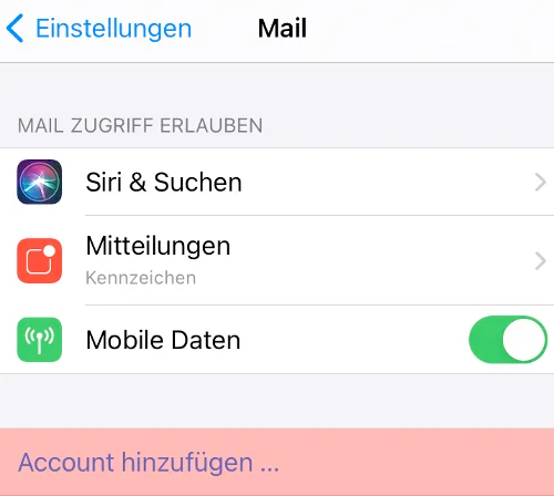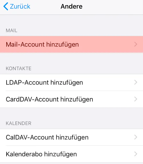 Sofern Sie noch keinen Account eingerichtet haben, finden Sie hier direkt Account hinzufügen. Ansonsten gehen Sie zuerst auf Accounts und dann Account hinzufügen.