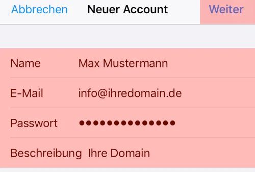 Geben Sie nun die entsprechenden Daten in die dafür vorgesehenen Eingabefelder ein und tippen Sie anschließend auf Weiter.