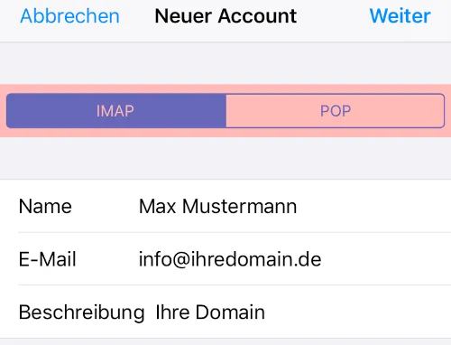 Nehmen Sie jetzt die Einstellungen des Servers für eintreffende E-Mails vor.