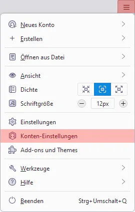 Klicken Sie in Thunderbird im Menü auf Konten-Einstellungen.